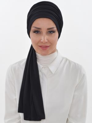 Ayşe Türban Tasarım Siyah Büzgülü Penye Bone Şal