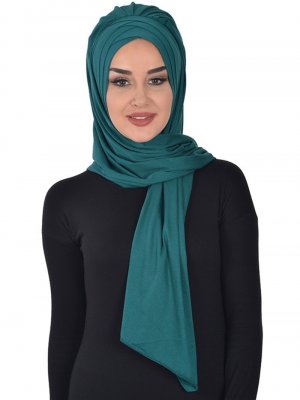 Ayşe Türban Tasarım Koyu Yeşil Takçık Pratik Penye Şal
