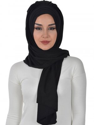 Ayşe Türban Tasarım Siyah Takçık Pratik Penye Şal