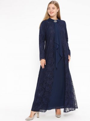 Sevdem Abiye Lacivert Dantelli Abiye Elbise
