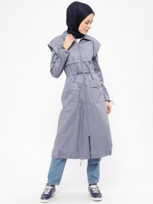 Neways Gri Fermuarlı Trençkot