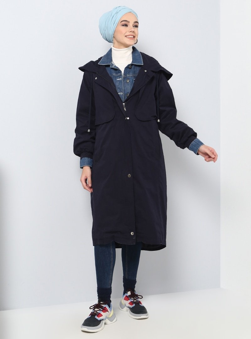 Benin Lacivert Doğal Kumaşlı Fermuarlı Mont
