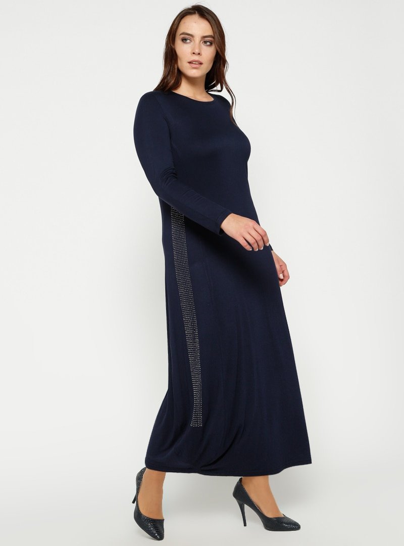 Efraze Lacivert Doğal KumaşlıElbise