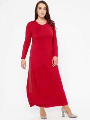 Efraze Kırmızı Doğal Kumaşlı Elbise
