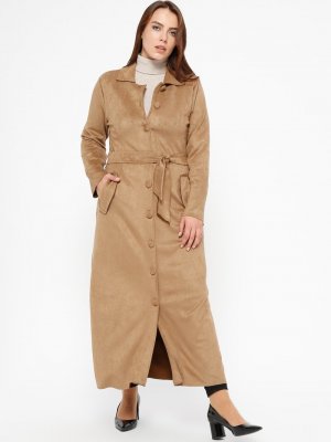 EFE FERACE Vizon Düğmeli Süet Pardesü