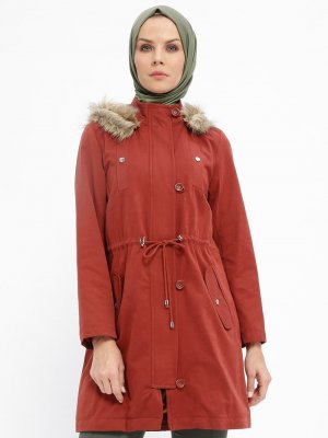 CML Collection Kiremit İçi Kürklü Gizli Fermuarlı Kaban