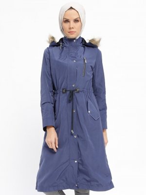 CML Collection İndigo İçi Kürklü Gizli Fermuarlı Kaban