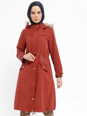 CML Collection Kiremit İçi Kürklü Gizli Fermuarlı Kaban