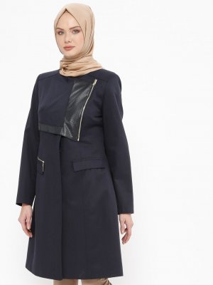 Tekbir Lacivert Gizli Düğmeli Fermuarlı Kaban