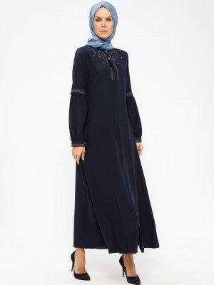 ŞAHİN FERACE Lacivert Nakış Detaylı Fermuarlı Ferace
