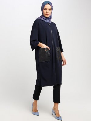 Armine Lacivert Deri Parçalı Kap
