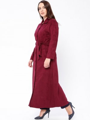 EFE FERACE Fuşya Düğmeli Süet Pardesü