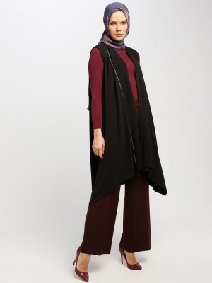 Armine Siyah Bordo Asimetrik Kesim Yelek