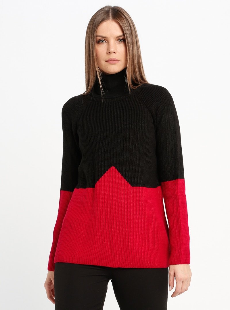Sementa Siyah Kırmızı Triko Kazak