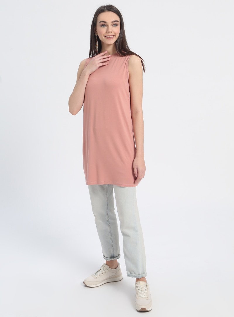 Everyday Basic Mercan Doğal Kumaşlı Kolsuz Tunik