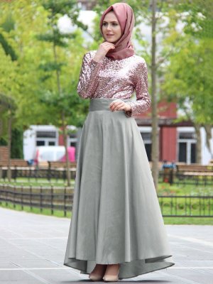 Night Blue Collection Bej Tafta Abiye Etek