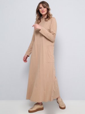 Alia Camel Düz Renkli Cepli Elbise