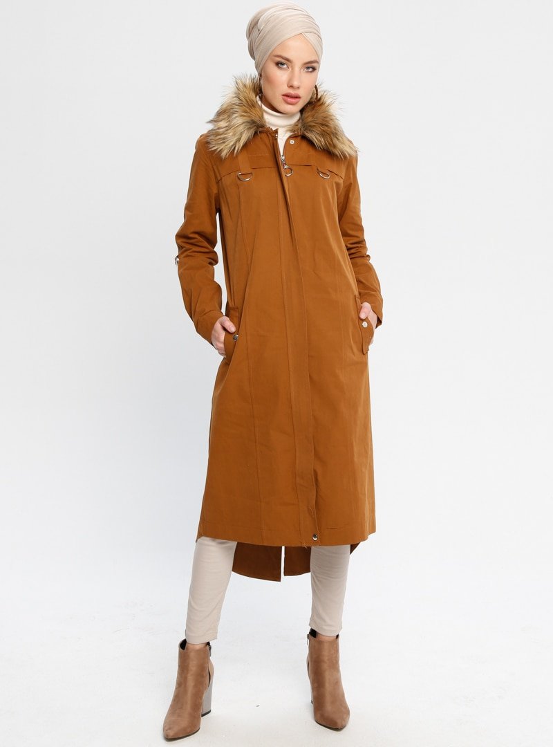 Loreen By Puane Taba Çıkarılabilir Kürk Yaka Kaban