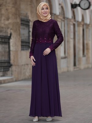 Amine Hüma Mor Alçin Abiye Elbise