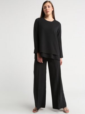 DESERT COVE FASHION Siyah Beli Lastikli Bol Paça Pantolon