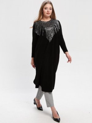 Arıkan Siyah Gümüş Yakası Pullu Tunik