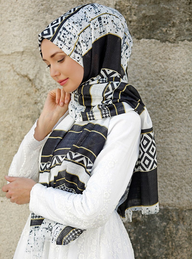 Şal Evi Karisik desenli Siyah Beyaz Desenli Şal