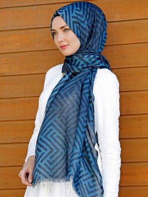 Şal Evi Karisik desenli Turkuaz Mavi Şal