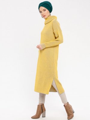 ERL Sarı Boğazlı Yaka Triko Tunik