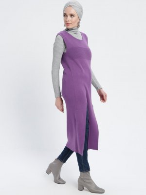 Okçu Mor Kolsuz Triko Tunik