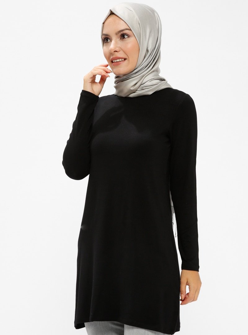 POUSSE Siyah Bisiklet Yaka Pamuklu Tunik