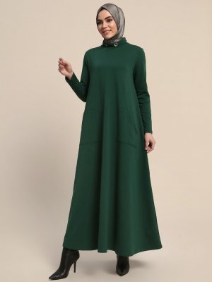 Refka Zümrüt Kuş Gözü Detaylı Cepli Elbise