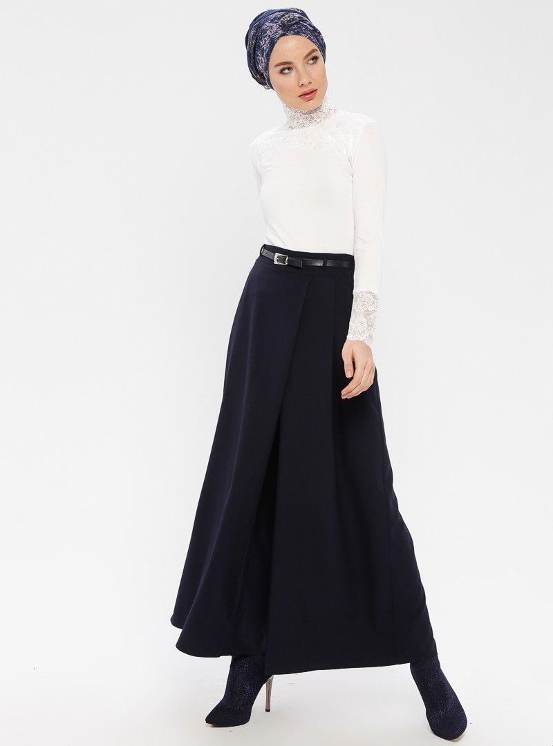 BÜRÜN Lacivert Kemerli Pantolon Etek