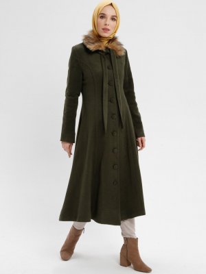 BÜRÜN Haki Kürk Detaylı Kaban