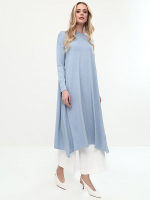Everyday Basic Açık İndigo 115 cm Doğal Kumaştan Asimetrik Tunik