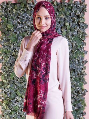 Akel Bordo Şimşek Desenli Pamuk Şal