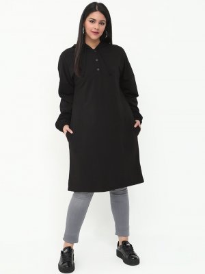Alia Siyah Cep Detaylı Kapüşonlu Tunik