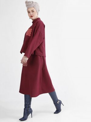 Nesrin Emniyetli Bordo Etek&Bluz İkili Takım