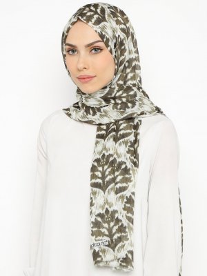 Renkli Butik Haki Desenli Pamuk Şal