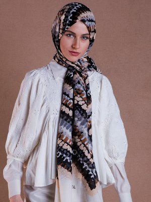 Akel Bej Gri Kesik File Şal