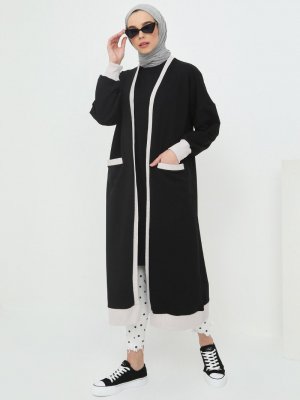 Benin Siyah Ribana Detaylı Cepli Hırka