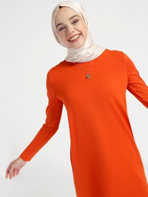 Everyday Basic Koyu Turuncu 85 cm Doğal Kumaşlı Basic Tunik