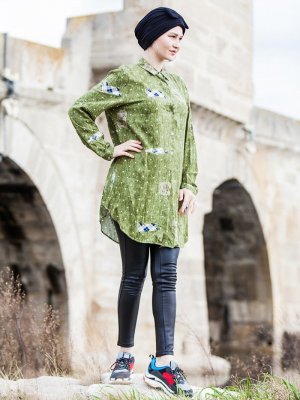 Tesse Yeşil Desenli Tunik