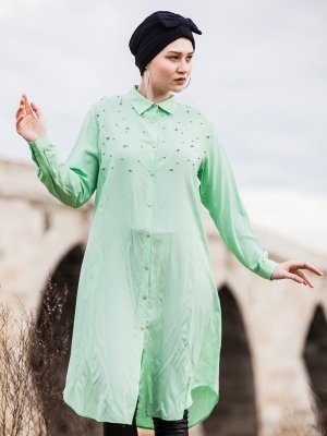 Tesse Açık Yeşil İncili Tunik