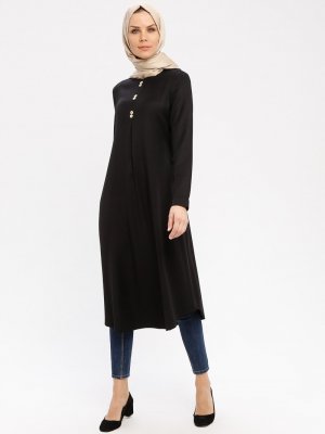 ECESUN Siyah Pile Detaylı Viskon Tunik