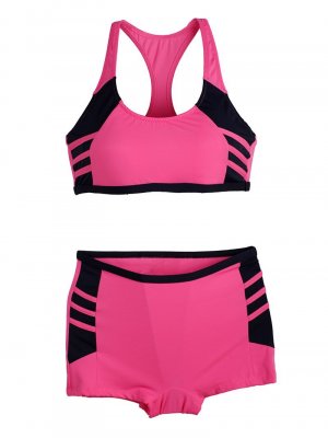 AKBENİZ Pembe Lacivert Yarım Kapalı Mayo