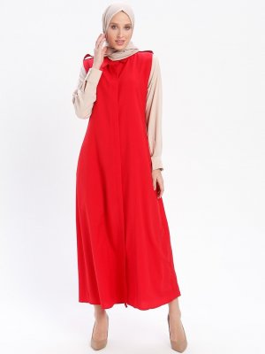 Moda Azramm Kırmızı Sivri Yaka Uzun Yelek