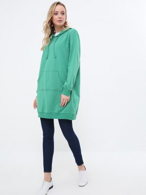 Everyday Basic Yonca Yeşili Kapüşonlu Spor Tunik