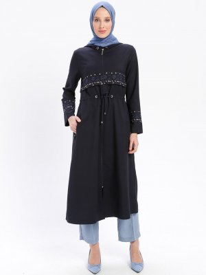 BÜRÜN Lacivert Nakış Detaylı Kapüşonlu Kap