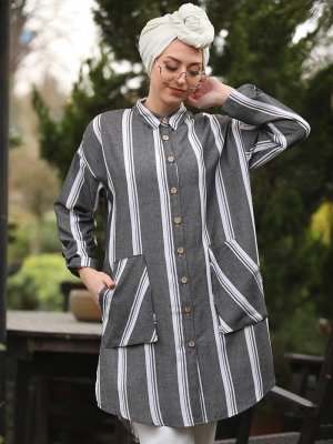 İnşirah Füme Çizgili Tunik