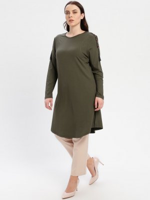 PINK APPLE Haki Omuzları Detaylı Tunik